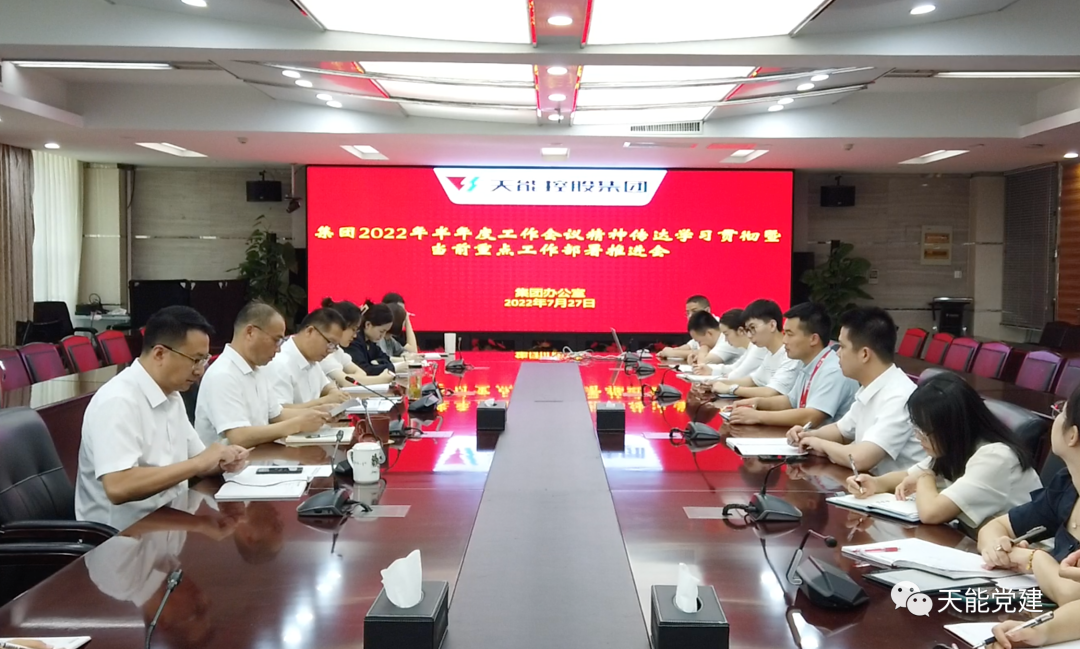 集团办公室召开“2022年半年度工作会议精神传达学习贯彻暨当前重点工作部署推进会”。对会议决议、进一步加强办公室系统建设的实施意见、开展“进一步弘扬奋斗者精神,扛起责任主动担当主题实践活动”等方案进行再宣贯、再落实